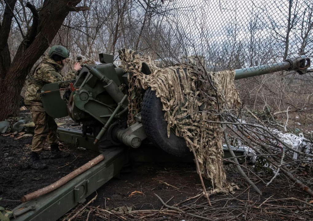 Lính Ukraine chuẩn bị khai hỏa lựu pháo ở gần thành phố Bakhmut, tỉnh Donetsk ngày 2/3. Ảnh: Reuters.