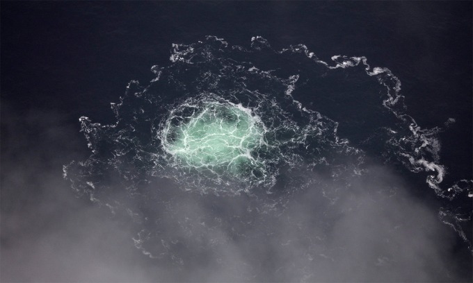 Bong bóng khí rò rỉ từ đường ống Nord Stream gần đảo Bornholm của Đan Mạch hồi tháng 9/2022. Ảnh: Cảnh sát biển Thụy Điển.