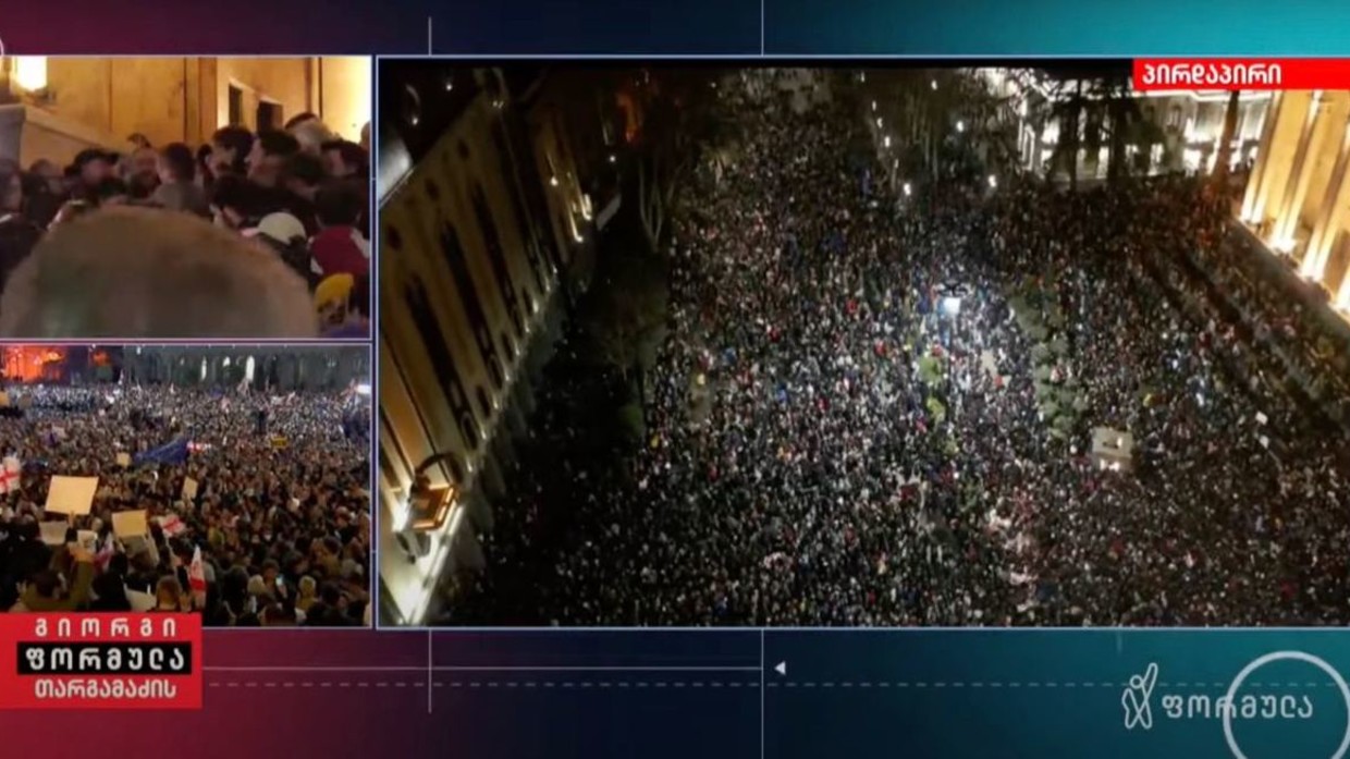 Cảnh sát đã giải tán được cuộc bạo loạn bên ngoài tòa nhà quốc hội vào tối 7/3, bắt giữ hơn 60 người vì hành vi gây mất trật tự. Vào ngày 8/3, phe đối lập đã đưa ra tối hậu thư yêu cầu cảnh sát thả người và quốc hội rút lại luật đại diện nước ngoài.
