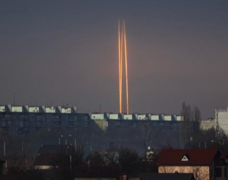 3 tên lửa của Nga được phóng từ khu vực Belgorod vào lúc bình minh ở Kharkiv ngày 9/3. Ảnh: AP