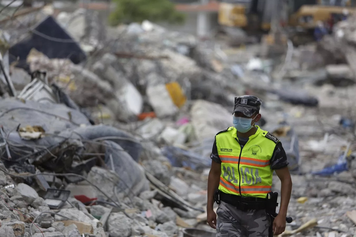 Cảnh sát đến hiện trường trận động đất ở Ecuador. Ảnh: AP