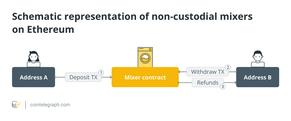 Quy trình gửi và nhận tiền thông qua máy trộn. Ảnh: Cointelegraph.