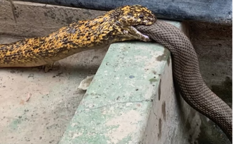 Trevor Datnow, chủ sở hữu công viên hoang dã Marrick ở Nam Phi, đăng video quay cảnh rắn hổ mang Nam Phi nuốt chửng rắn mole, theo báo Mỹ Newsweek.