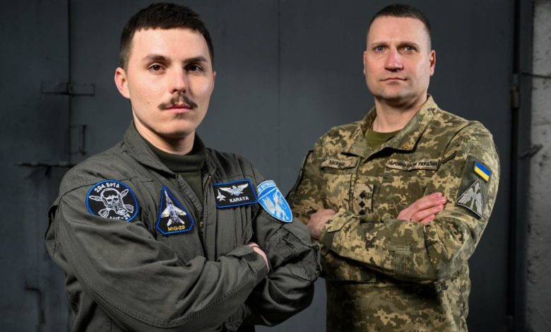 Các phi công nổi tiếng của Ukraine: Đại tá Lohachov (phải) và Thiếu tá Voroshylov. Ảnh Telegraph