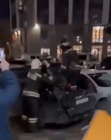 Đoạn video ghi lại cảnh người đàn ông sống sót thần kỳ, bò dậy từ nóc xe ô tô đã lan truyền rộng rãi trên mạng xã hội (Xem Video dưới - Nguồn Twitter):