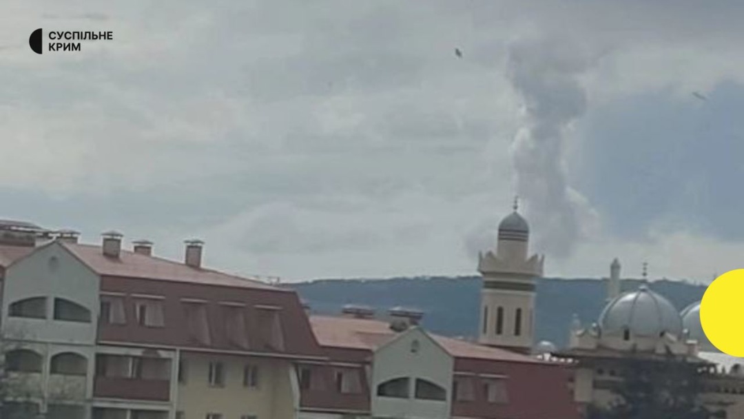 Hình ảnh cột khói bốc lên sau khi cư dân Crimea nghe thấy hai tiếng nổ lớn. Ảnh Ukrinfỏm