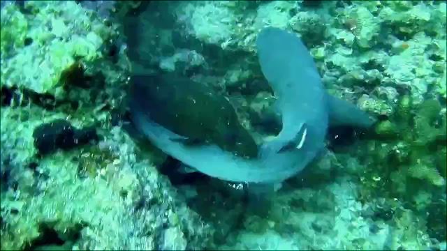 Thậm chí, ngay cả những chú cá mập nhỏ cũng có thể trở thành bữa ăn ngon cho lươn biển nếu thiếu cảnh giác. Điển hình như trong clip dưới đây, chú cá mập kém may mắn đã bị một con lươn biển tóm gọn.