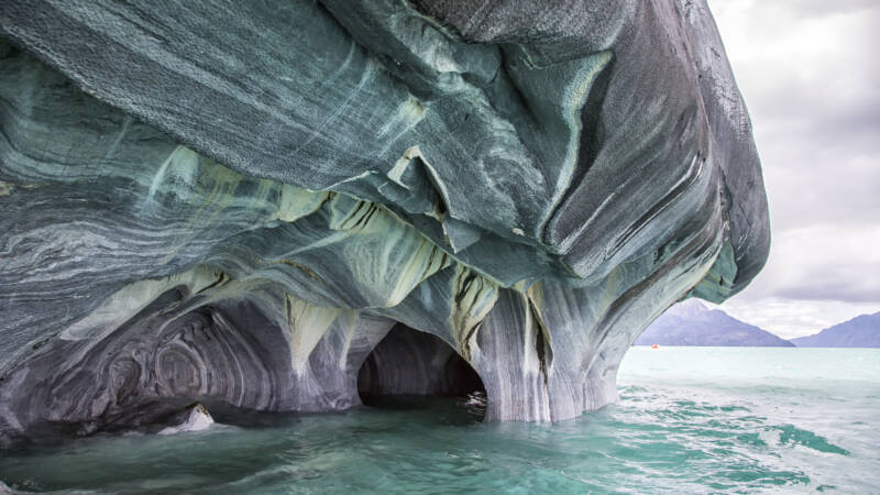 Có vẻ Mẹ thiên nhiên đã vô cùng nỗ lực để tạo nên tuyệt tác có một không hai này. Cuevas de Mármol nằm trên một bán đảo giáp với Hồ General Carrera, một hồ băng trải dài qua biên giới Chile-Argentina. Khối đá cẩm thạch này được cho là nặng hơn năm tỷ tấn. Các hang động đã được hình thành qua hàng ngàn năm sóng đánh vào đá vôi. Màu sắc của cả hồ và hang động thay đổi tùy thuộc vào thời gian trong năm. Để đến đây, du khách phải đi thuyền khoảng 30 phút và đi theo hướng dẫn viên du lịch địa phương để đảm bảo an toàn.