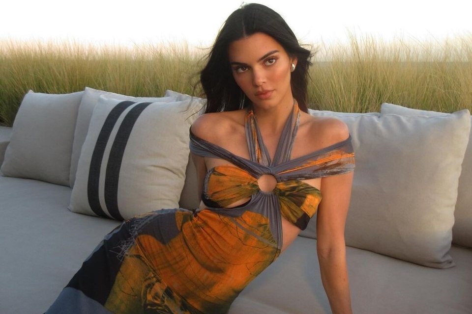 Khi mặc mẫu đầm, Kendall cũng tạo dáng theo hình thể được in trên váy. Dù không có chi tiết cắt xẻ ở vị trí nhạy cảm, món đồ vẫn làm nổi bật đường cong cơ thể ấn tượng của ngôi sao nữ.