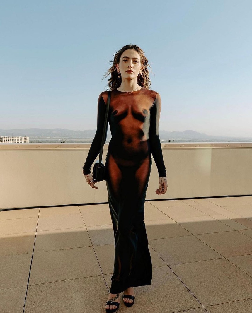 Paris Jackson thể hiện vẻ đẹp quyến rũ, gợi cảm trong thiết kế in hình cơ thể phụ nữ. Ảnh: @Janetmandell.