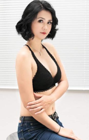 Kim Huệ khoe dáng nóng bỏng tuổi U50 trong trang phục bao gồm quần jean và bra ren màu đen.