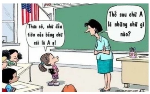- Vậy em hãy nói sau chữ A là chữ gì? - cô giáo hỏi tiếp.