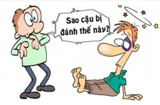 Ôi chuyện gì thế này? Cậu làm sao mặt mũi sưng đỏ hết cả thế? Để tớ đưa cậu về nhà cho vợ cậu chăm sóc!