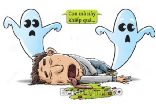 - Chết cái gì mà chết! Tôi mới bị vợ đánh vì đi nhậu về nè!