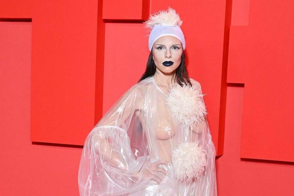 Tham dự liên bữa tiệc ra mắt phim The Idol trong khuôn khổ liên hoan phim Cannes lần thứ 76, Julia Fox gây ấn tượng nhờ chiếc váy xuyên thấu. Chất liệu nhựa trong suốt giúp cô khoe toàn bộ đường cong cơ thể.