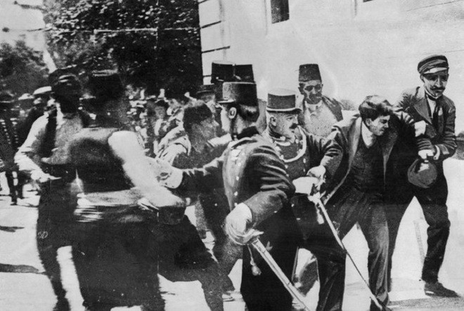 Hung thủ ám sát Thái tử Áo-Hung bị bắt tại hiện trường. Ảnh: Brewminate