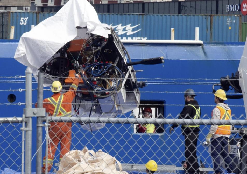 Các bộ phận của tàu lặn Titan đã được dỡ xuống tại bến tàu ở cảng St. John, Newfoundland - Canada. Theo thông cáo, các mảnh vỡ được cho là thân, mũi tàu, bảng điều khiển, ván trượt hạ cánh của tàu lặn.