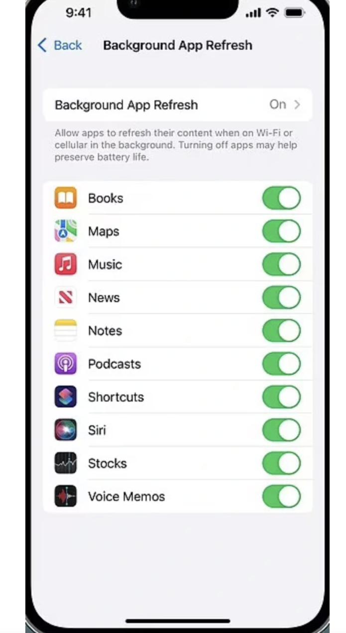 "Đối với người dùng Apple, hãy đi tới Cài đặt> Chung> Làm mới ứng dụng nền và chọn Wi-Fi, Wi-Fi & Dữ liệu di động hoặc Tắt để dừng hoàn toàn Làm mới ứng dụng nền", chuyên gia cho biết.