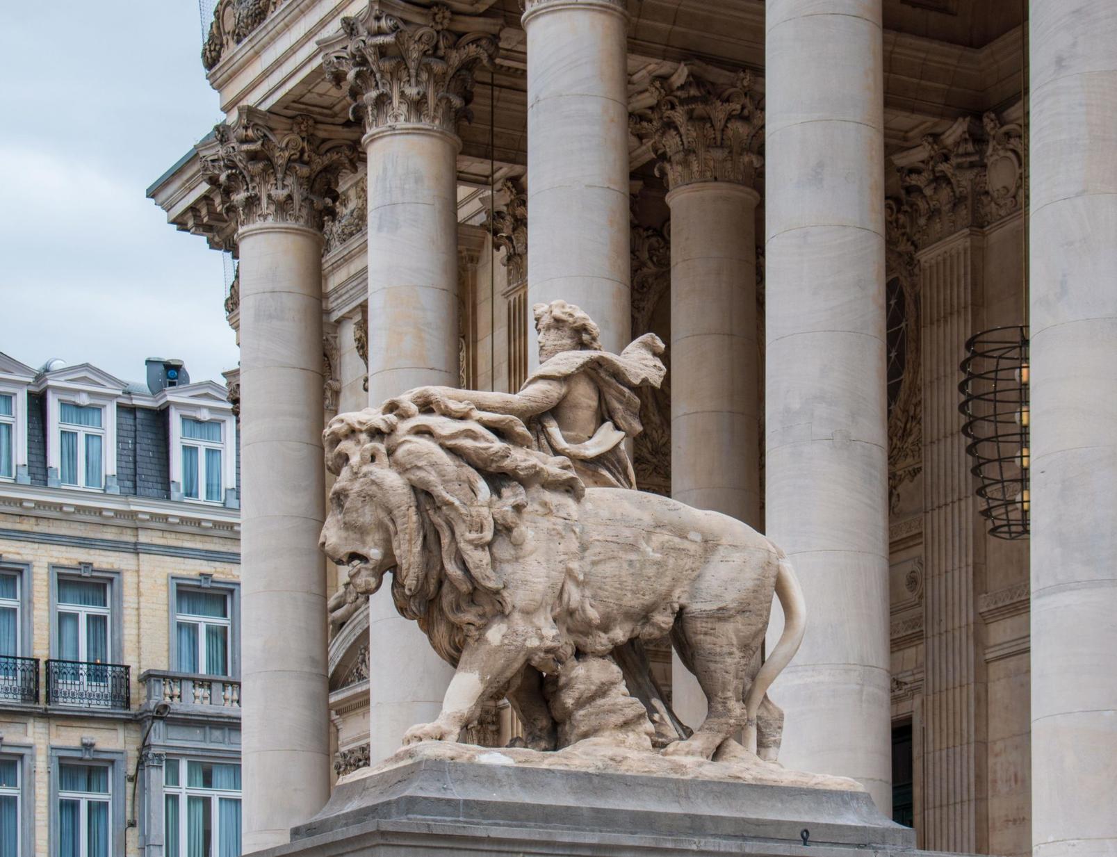 Có hai bức tượng nằm ở hai bên lối vào tòa nhà, Bỉ đã chi rất nhiều tiền để được khôi phục trong khuôn khổ dự án trùng tu lớn. Khi du khách cố gắng trèo xuống, một phần của bức tượng, được cho là ngọn đuốc, đã vỡ ra. Anh ta bị cảnh sát bắt giữ tại một nhà hàng thức ăn nhanh gần đó và cho biết bản thân không biết về mức độ thiệt hại mà mình đã gây ra. Tờ báo địa phương Nieuwsblad đưa tin việc phục hồi bức tượng ước tính tiêu tốn 29.000 USD và Sở giao dịch chứng khoán Brussels có kế hoạch bắt khách du lịch này phải trả tiền.