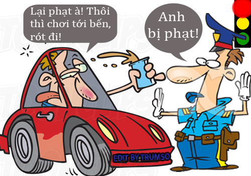 Tan tiệc, trên đường về nhà anh ta dừng xe quá vạch đèn đỏ liền bị cảnh sát giao thông chặn lại:
