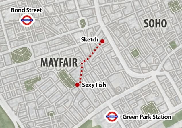 Nhóm du khách đi từ Sexy Fish đến Sketch, quãng đường chỉ khoảng 500m.