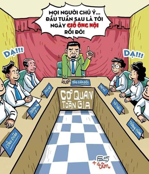 - Hôm nay giám đốc nghỉ lo đám tang. Bố giám đốc vừa mất!