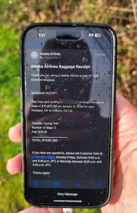Theo một người có tên Seanathan Bates, anh đã tìm thấy chiếc iPhone của hành khách thuộc chuyến bay Alaska Airlines trên vệ đường. Điều đáng kinh ngạc là nó vẫn đang bật chế độ máy bay, còn 50% pin và đang mở trang web theo dõi hành lý của chuyến bay. Chiếc iPhone này, được bảo vệ bởi ốp lưng và miếng dán màn hình, dường như không hề hấn gì sau cú rơi từ độ cao hơn 4.800 mét.