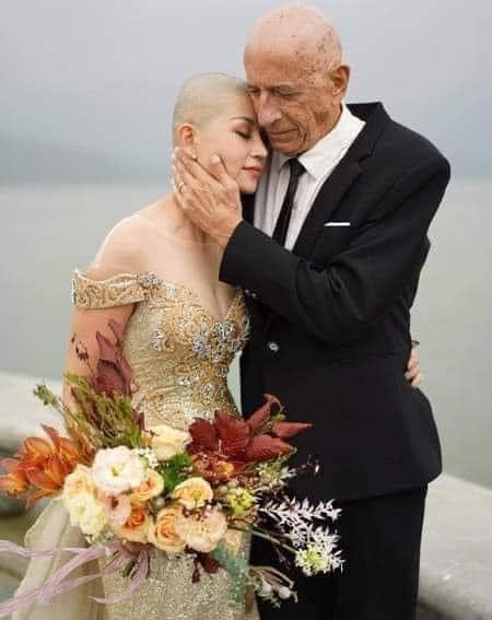 kết hôn và cạo trọc đầu cùng nhau chụp ảnh cưới.