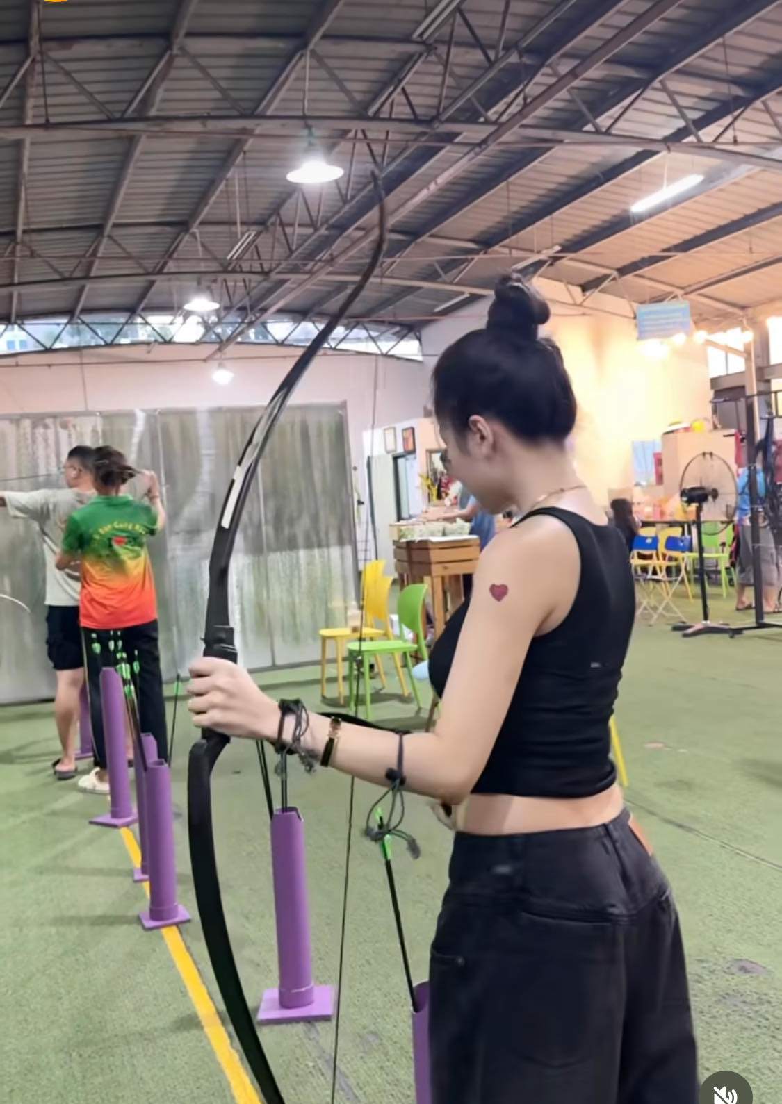 Trâm Anh gây chú ý khi xuất hiện trên sân bắn cung trong outfit trẻ trung, năng động. Cô lựa chọn quần jean ông suống phối cùng áo croptop, khoe khéo vòng eo thon thả. Dưới phần bình luận, cư dân mạng dành nhiều lời khen ngợi cho vóc dáng nuột nà, quyến rũ của Trâm Anh cũng như gu thời trang tôn dáng của cô nàng.
