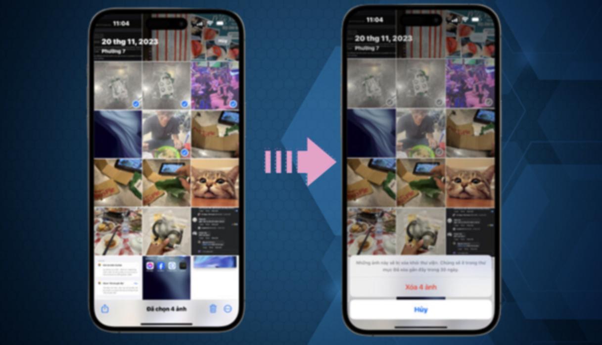 Bạn thực hiện xóa bằng cách mở ứng dụng Ảnh trên thiết bị và nhấn vào tab “Thư viện” > nhấn vào tab “Tất cả ảnh” > thực hiện xóa ảnh. Nếu muốn xóa một hình ảnh hoặc một video, bạn hãy nhấn vào nó và nhấn tiếp vào nút biểu tượng thùng rác, sau đó nhấn tiếp vào “Xóa ảnh”.