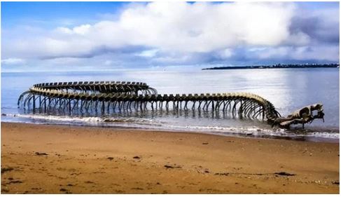 Bản sao này dài gần 15 mét, nặng hơn 1.100 kg, đường kính thân gần 1 mét và đang nuốt chửng một con cá sấu lớn. Bản sao này từng được trưng bày tại Nhà ga Grand Central của New York, gây chấn động và sốc.