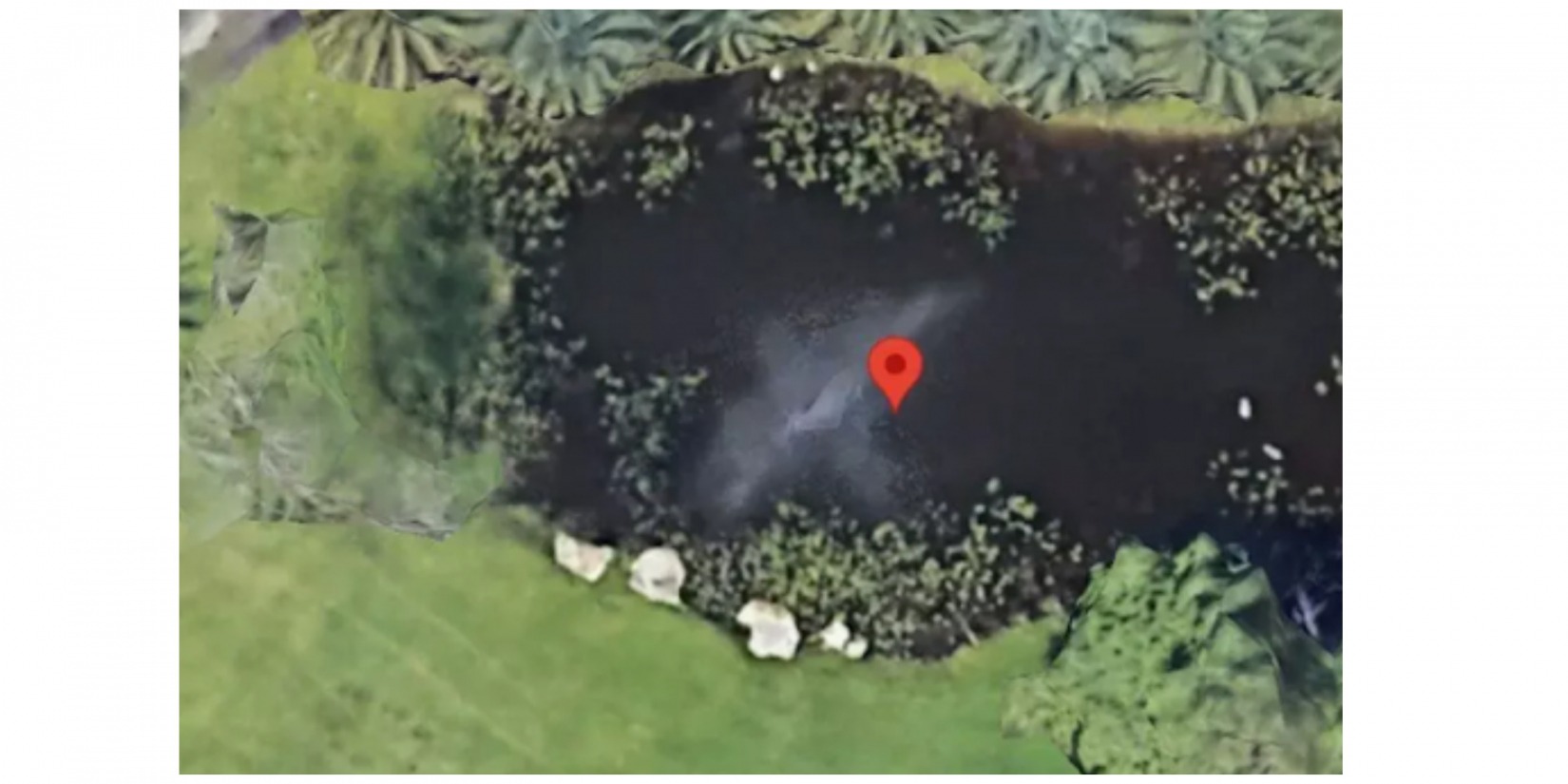 Do góc chụp và điều kiện ánh sáng, chiếc phao hiện lên với hình dạng giống như người đang bơi, tạo nên sự nhầm lẫn cho những người quan sát qua ảnh vệ tinh.