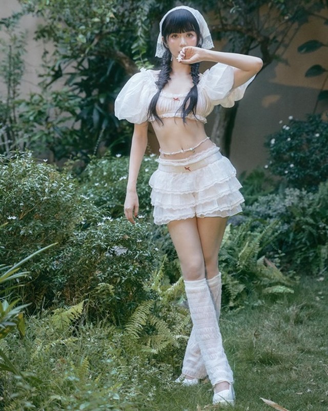 Nữ người mẫu trông trẻ hơn tuổi thật nhờ gương mặt bầu bĩnh, đôi mắt to tròn, làn da trắng. Ngọc Trinh không ngại 'cưa sừng làm nghé'.