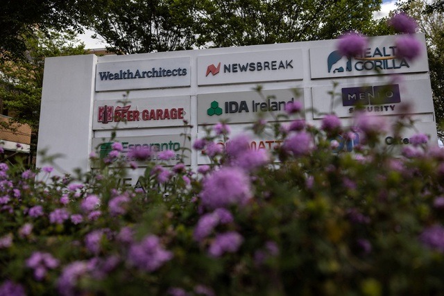 Lôgô của công ty Newsbreak tại một tòa nhà văn phòng ở Mountain View thuộc bang California (Mỹ) ngày 26.4