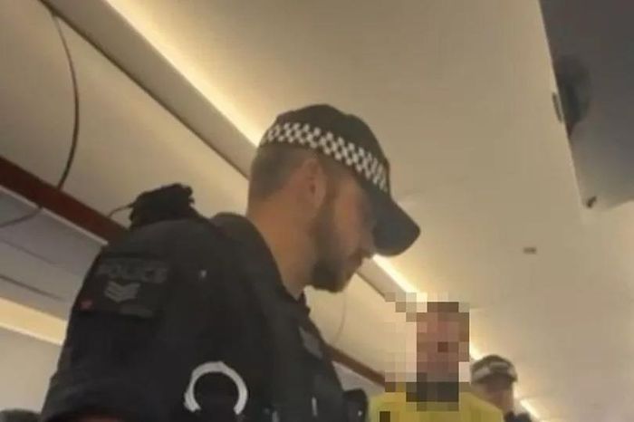 Cảnh sát lên máy bay cưỡng chế một số người đàn ông đi. Ảnh chụp màn hình: Manchester Evening News.