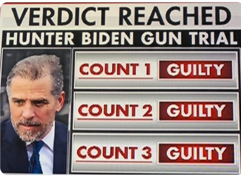 CNN vừa mới đưa tin: “Bồi thẩm đoàn liên bang đă kết án Hunter Biden đă vi phạm luật ngăn chặn người nghiện ma túy sở hữu súng”. Việc kết án loại tội phạm này nh́n chung rất nhẹ không dẫn đến án tù. Cùng lắm Hunter Biden chỉ bị phạt tiền hay tù treo là cao nhất mà thôi .Âu cũng là một sự mớm mồi dư luận !