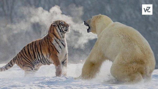 Hổ Siberia và gấu Bắc Cực là hai trong số những kẻ săn mồi hung dữ nhất hành tinh, sở hữu sức mạnh và kích thước phi thường. Tuy nhiên chưa từng có việc một con hổ Siberia chiến đấu hoặc thậm chí là giết chết một gấu Bắc Cực bên ngoài tự nhiên. Do đó, chúng ta có thể mang cuộc chiến giữa gấu nâu Ussuri và hổ Siberia làm ví dụ - gấu nâu Ussuri và hổ Siberia có cùng lãnh thổ.