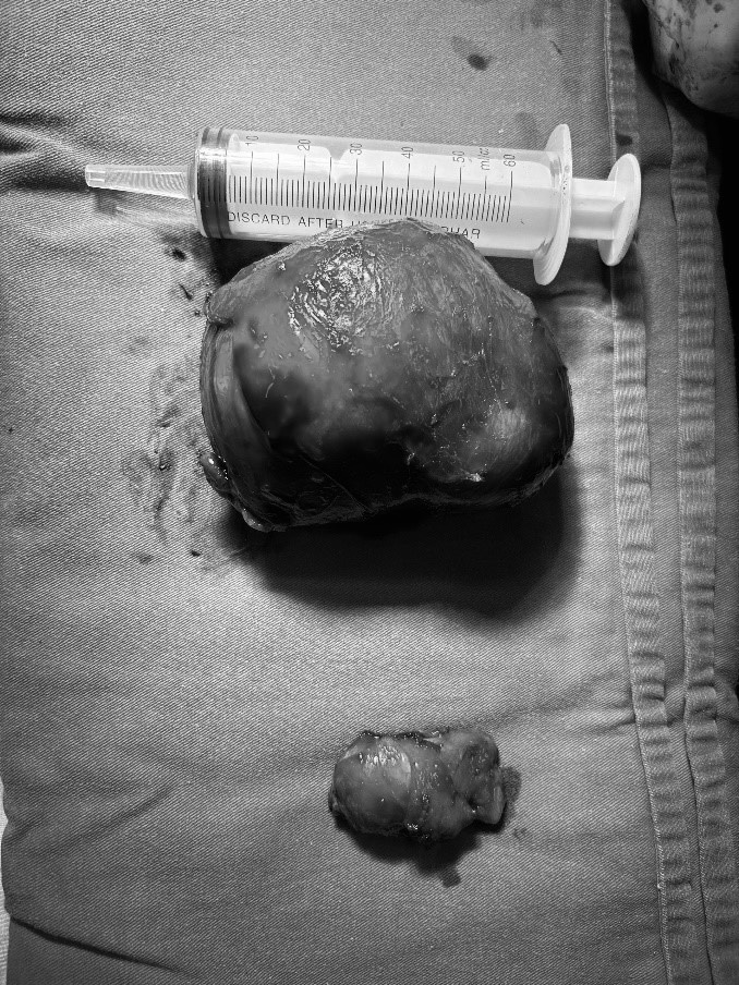 Khối u tinh hoàn được lấy ra. Ảnh BVCC