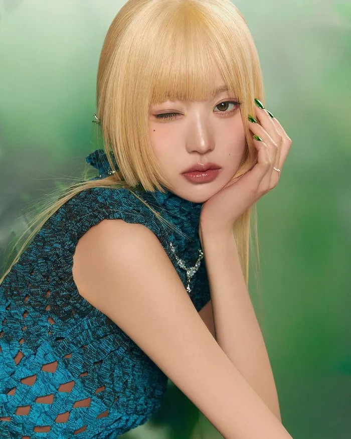 Sự nữ tính được cân bằng tinh tế với tạo hình cá tính. Jang Wonyoung mang đến sự đối lập thú vị, vẻ ngoài đẹp hơn nhờ màu tóc vàng rực sáng. Nhiều người mê mẩn tạo hình lạ lẫm này của Jang Wonyoung.