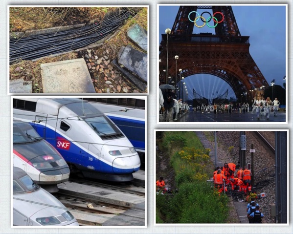 Các tuyến tàu cao tốc của Pháp là mục tiêu của nhiều hành động "độc hại", bao gồm đốt phá các tuyến cáp của tàu cao tốc hôm thứ Sáu, được mô tả là "một cuộc tấn công vào nước Pháp" và "sự phá hoại có phối hợp" nhằm làm gián đoạn việc đi lại trước lễ khai mạc Thế vận hội Paris.