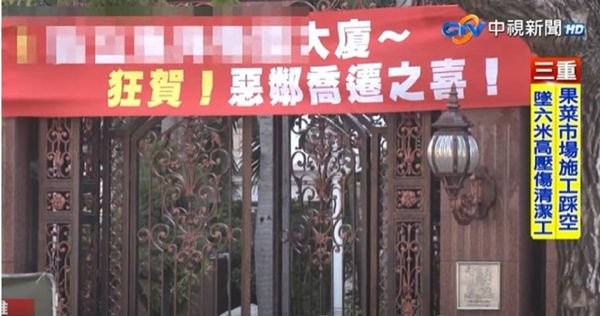 Đài CTV News đưa tin, một tòa chung cư cao cấp ở Cao Hùng mới đây đã treo tấm biểu ngữ màu đỏ ngay cổng vào với nội dung: "Xin chúc mừng! Chúc mừng người hàng xóm khó ưa đã chuyển đi", thu hút sự chú ý của nhiều người qua đường.