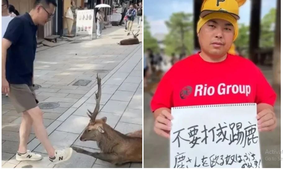 Hình ảnh du khách Trung Quốc "đá chân" vào chú hươu tại công viên Nhật Bản gây chú ý. Theo tình nguyện viên tại công viên, đây là hành vi ngược đãi động vật.