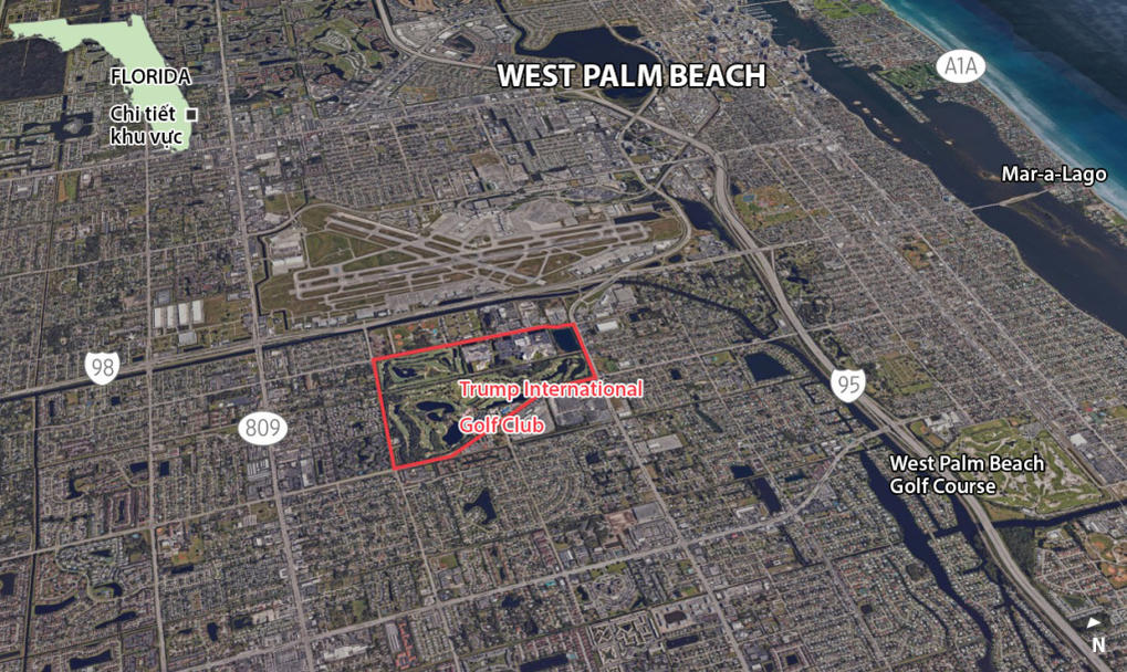 Vị trí sân golf Trump International Golf Club ở West Palm Beach, bang Florida. Đồ họa: WSJ