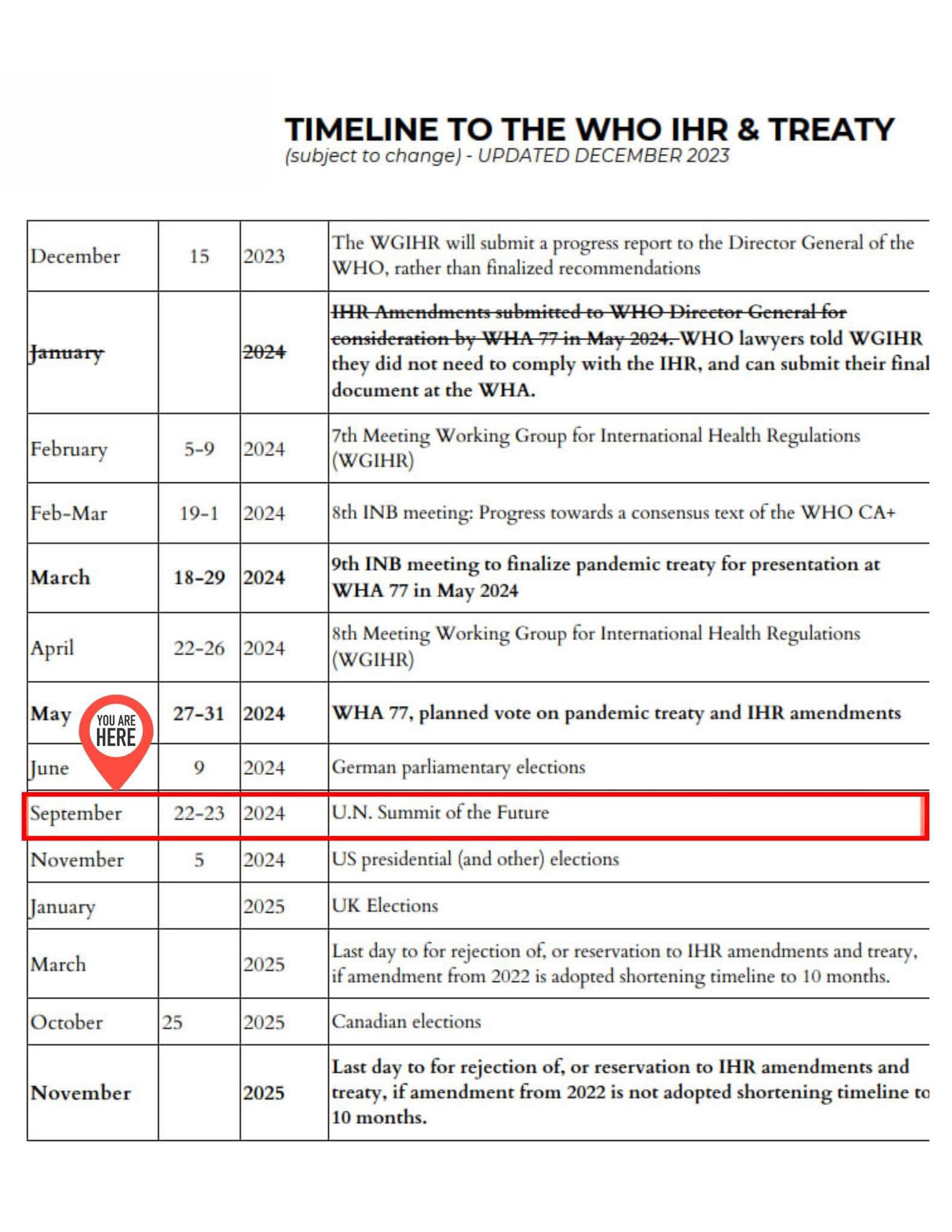 Trong 4 ngày qua, liên hiệp quốc đã họp "The Pact for the Future" và thông qua "Agenda 2030" nhằm tiến đến việc toàn cầu hóa vào năm 2030 theo áp lực của Mỹ. 143 nước bỏ phiếu chấp nhận kế hoạch này. Khu nam Mỹ chỉ có Argentina and El Salvador chống lại. Theo chính sách này Canada, Mỹ, Mexico và các nước ở Nam Mỹ sẽ biến thành một khối không biên giới và các nước trong các khu vực cũng họp lại từng khối, không biên giới. Tổng thư ký liên hiệp quốc sẽ biến thành lãnh đạo tối cao của các khối này.