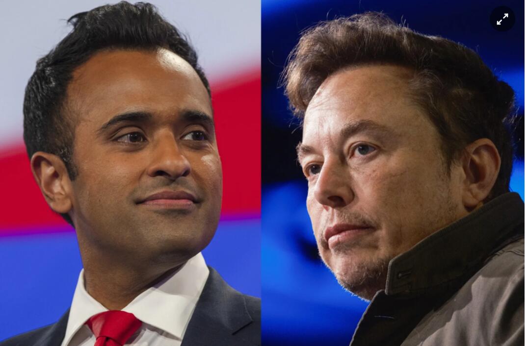 Doanh nhân Vivek Ramwswamy và tỷ phú Elon Musk. Ảnh: Bloomberg.