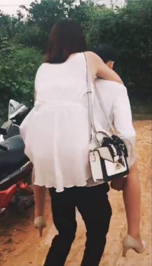 Cô gái cũng đành đồng ý để anh cõng trả bằng hiện vật vậy vì đò thì không có, thuê tiền không xong.