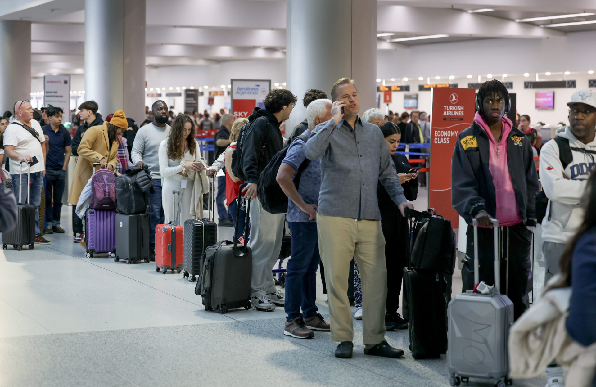 Hành khách chờ qua trạm kiểm soát TSA PreCheck ở phi trường quốc tế Miami International Airport hôm 20 Tháng Mười Hai, 2024 ở Miami, Florida. (Hình: Joe Raedle/Getty Images)