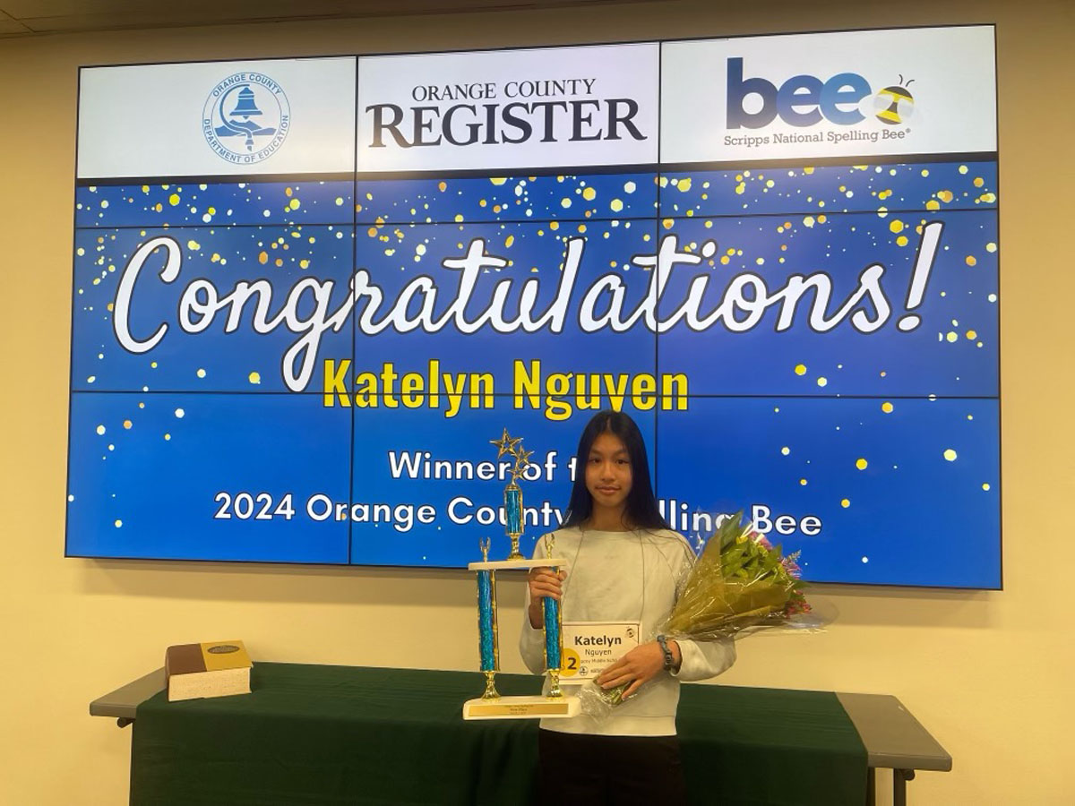 Người thứ hai là nữ sinh Katelyn Nguyễn, 13 tuổi, vào chung kết giải thi đánh vần Scripps National Spelling Bee toàn quốc ở Washington, DC, hồi Tháng Năm, sau 20 vòng thi đấu. Cô là học sinh trường Helen Stacey Intermediate School, ở Huntington Beach, người đầu tiên từ Học Khu Westminster đạt thành tích này.