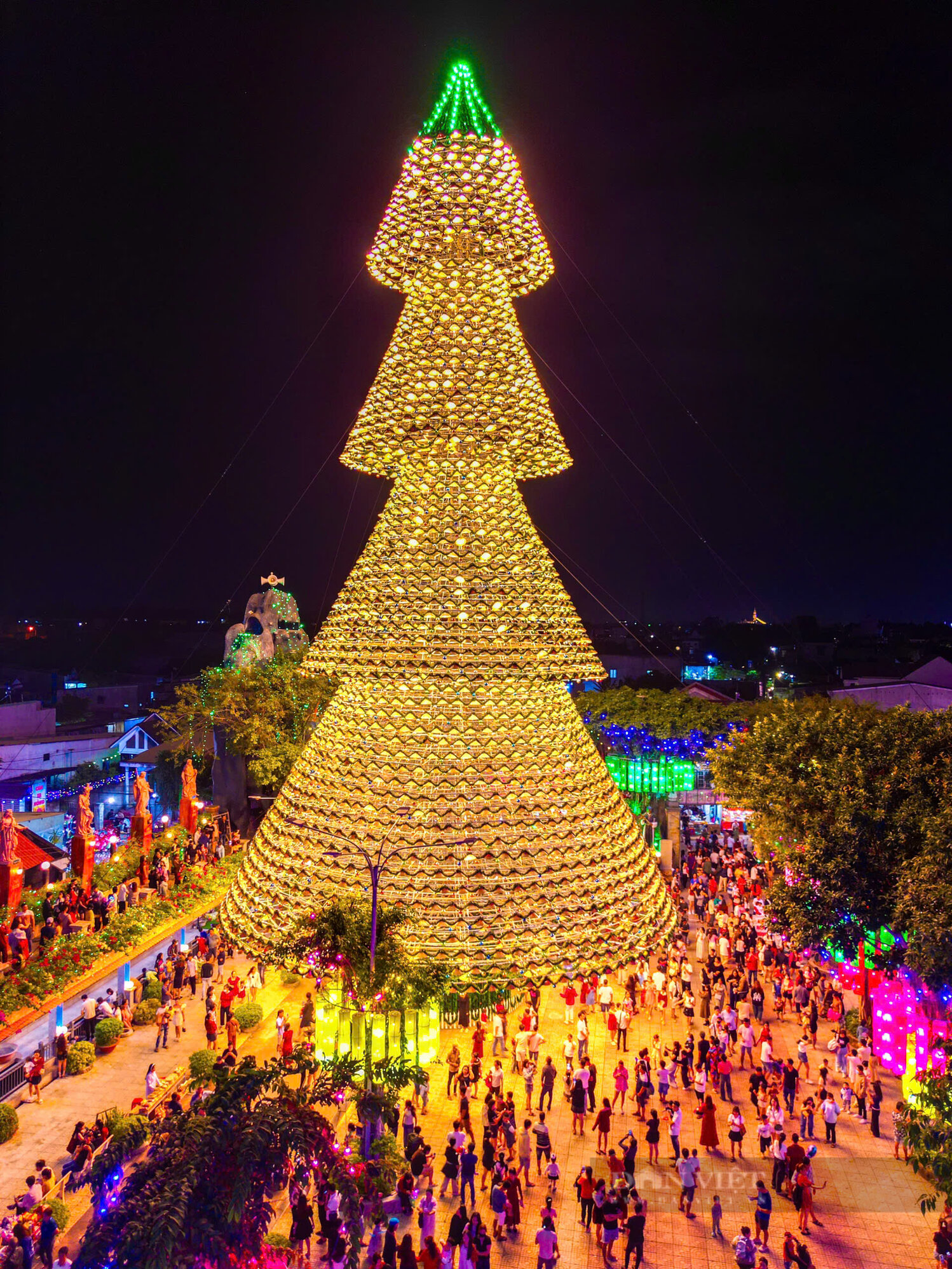 Hơn 3.800 chiếc nón lá được kết thành cây thông Noel cao gần 40m tại Đồng Nai được xem là có một không hai tại Việt Nam.