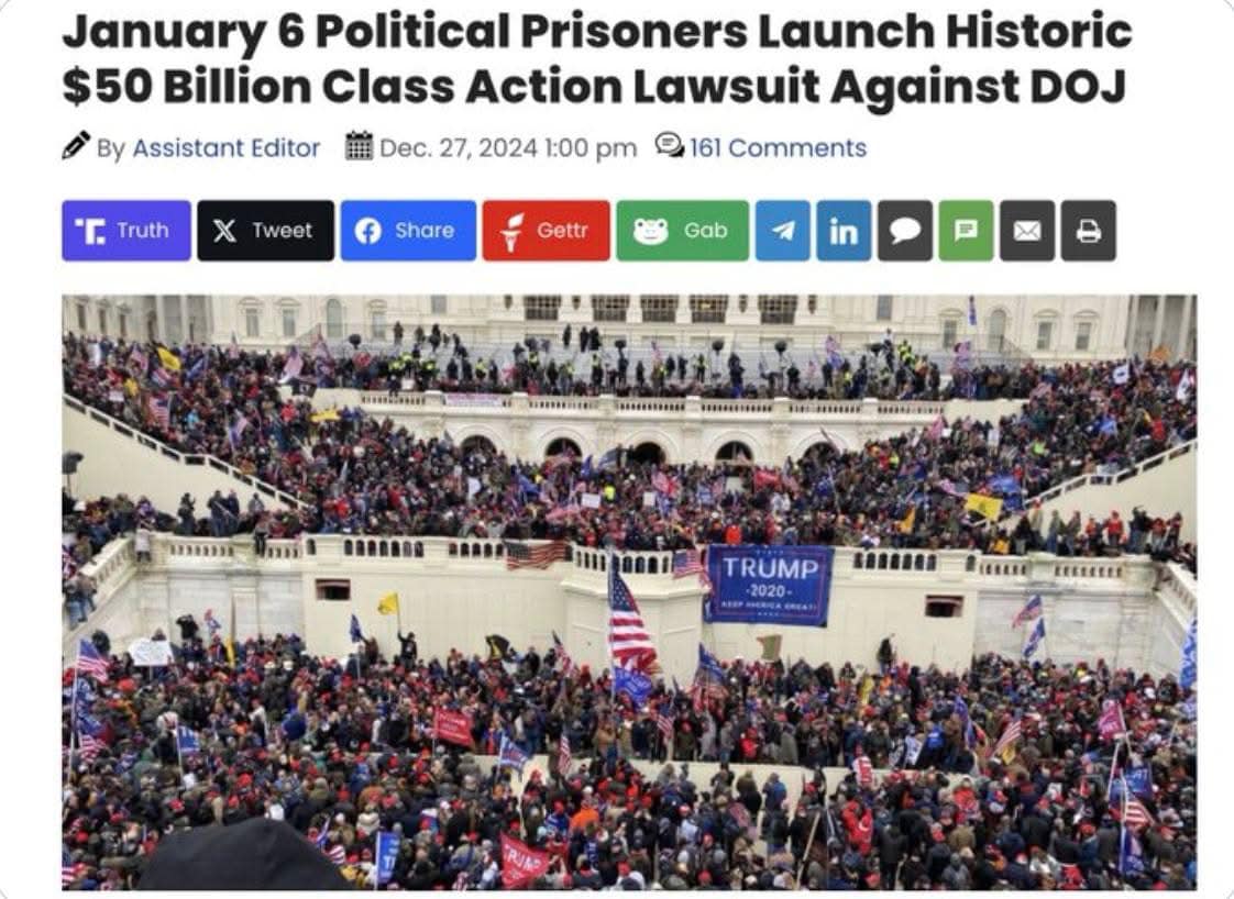 Vụ kiện tập thể trị giá 50 tỷ đô la do các tù nhân đệ trình vào ngày 6 tháng 1 chống lại Bộ Tư pháp là một lập trường lịch sử và cần thiết chống lại sự lạm quyền của chính phủ và đàn áp chính trị. Những cá nhân này, nhiều người trong số họ đã phải chịu nhiều năm tù oan, cuối cùng cũng đang chống lại hệ thống tư pháp hai tầng của chính quyền Biden. Vụ kiện này gửi đi một thông điệp mạnh mẽ: việc biến Bộ Tư pháp thành vũ khí chống lại những người bảo thủ không thể và sẽ không trở thành tiêu chuẩn ở Hoa Kỳ.